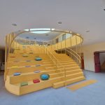 La nuova scuola si sviluppa su due livelli e accoglie la scuola dell’infanzia, primaria e secondaria di primo grado in spazi funzionalmente indipendenti ma interconnessi. Gli ambienti interni sono flessibili e riconfigurabili, pensati per una didattica attiva e non frontale. L’agorà centrale, illuminata zenitalmente da un ampio lucernario, è il cuore pulsante dell’edificio: uno spazio multifunzionale destinato a usi scolastici e comunitari, capace di ospitare eventi, spettacoli, incontri pubblici.