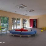 Attorno all’agorà si sviluppano le aule modulari, i laboratori, gli spazi per gli insegnanti, i servizi, la mensa comune – concepita anch’essa come laboratorio didattico – e la biblioteca diffusa, pensata non come luogo chiuso, ma come sistema aperto e permeabile, con postazioni di lettura e studio individuale o in piccoli gruppi. Tutti gli ambienti sono dotati di arredi flessibili e integrano soluzioni per il comfort acustico, visivo e climatico.
