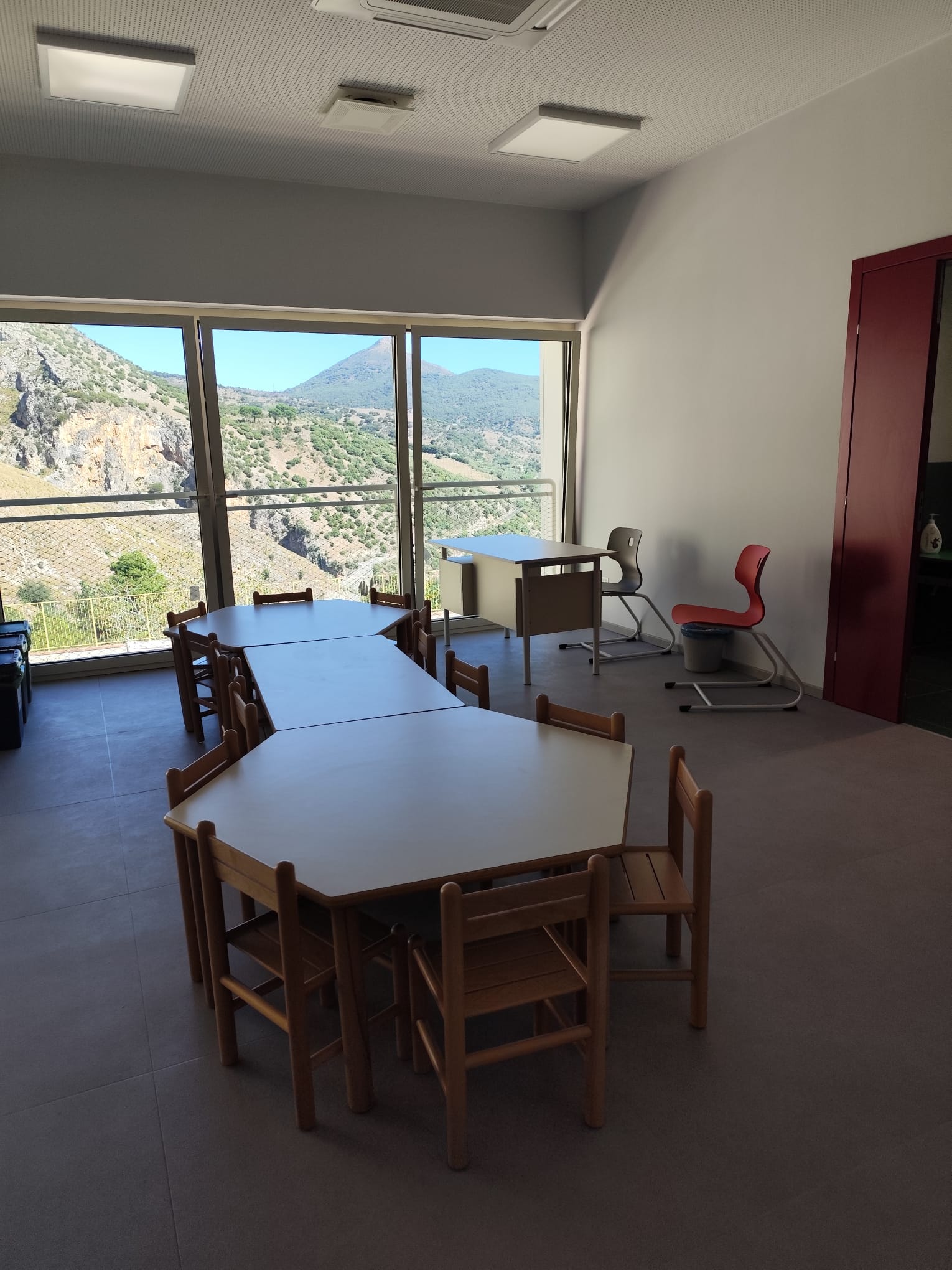 Attorno all’agorà si sviluppano le aule modulari, i laboratori, gli spazi per gli insegnanti, i servizi, la mensa comune – concepita anch’essa come laboratorio didattico – e la biblioteca diffusa, pensata non come luogo chiuso, ma come sistema aperto e permeabile, con postazioni di lettura e studio individuale o in piccoli gruppi. Tutti gli ambienti sono dotati di arredi flessibili e integrano soluzioni per il comfort acustico, visivo e climatico.